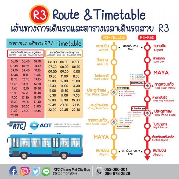 สำหรับเพื่อนๆ ที่มีจุดหมายปลายทางที่จังหวัดเชียงใหม่ แล้วไม่รู้ว่าจะเดินทางในโซนตัวเมืองยังไงดี จะเรียก Grab ก็ไม่รู้จะปลอดภัยจากรถ Taxi เจ้าถิ่นหรือไม่ จะเช่ารถก็เบื่อเรื่องหาที่จอด จะโบกรถแดงก็กะเกณฑ์เส้นทางของรถที่ขึ้นไม่ได้เลย วันนี้ Trendy Tour จะแนะนำให้เพื่อนๆได้ลองหันมาใช้ ขนส่งมวลชน รถบัส RTC หรือที่หลายคนเรียกว่า รถเมล์เชียงใหม่ กับเส้นทางใหม่สาย R3 (พิเศษ)